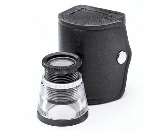 Excellent for determining paper quality and ink absorption. Ideal for proofreaders. The transparent acrylic base rests directly on work for clear, close-up examinations. Base admits light to subject under view. 9X is Kellner-type, color-corrected, three-element lens system.