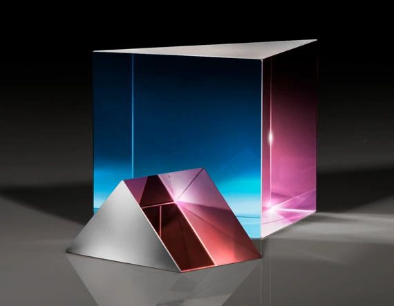 Right angle prisms are generally used to bend image paths or redirect light at 90°. This produces a left handed image and depending on the orientation of the prism, the image may be inverted or reverted. Right angle prisms can also be used in combination for image/beam displacement. TECHSPEC® High Tolerance UV Fused Silica Right Angle Prisms feature low arcsecond angle tolerance and and are made from precision UV fused silica for use in a variety of UV, Visible and NIR applications
