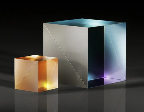 TECHSPEC® Laser Line Non-Polarizing Cube Beamsplitters offer users the ability to split light evenly into orthogonal paths regardless of the incoming polarization state. These cubes are designed with a metallic-dielectric hybrid coating that yields less than a 3% difference in transmission for S-polarized and P-polarized light. These cubes are compatible with common Nd:YAG and HeNe lasers and are available with three beamsplitter coating options at 1064nm, 632nm, and 532nm. Efficiency is enhanced with AR coatings on the entrance and exit faces featuring <0.25% reflection per surface. TECHSPEC® Laser Line Non-Polarizing Cube Beamsplitters will displace a beam by less than 2 arcmin, making them easy to integrate into alignment sensitive applications.