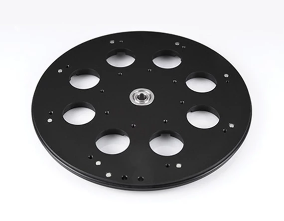 The filter wheel housing can be mounted using English or metric mounting plates. The English mounting plates are designed with three ¼-20 tapped holes for post mounting, and are compatible with English laboratory tables. The metric mounting plates are designed with three M6 tapped holes for post mounting, and are compatible with metric laboratory tables. C-mount or T-mount adapters are available for easy integration.
