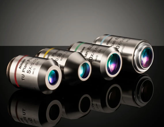 Nikon CFI60 Infinity Corrected Brightfield Objectives are designed to meet advanced imaging requirements and are the culmination of Nikon’s optical technology. The Nikon CFI60 Infinity Corrected Brightfield Objectives offer increased brightness and the highest possible combination of working distance and numerical aperture (for light gathering ability) due to the 60mm parfocal distance and a large barrel diameter. Designed to correct lateral and axial chromatic aberrations over the entire field of view, these objectives produce high contrast and high resolution images.