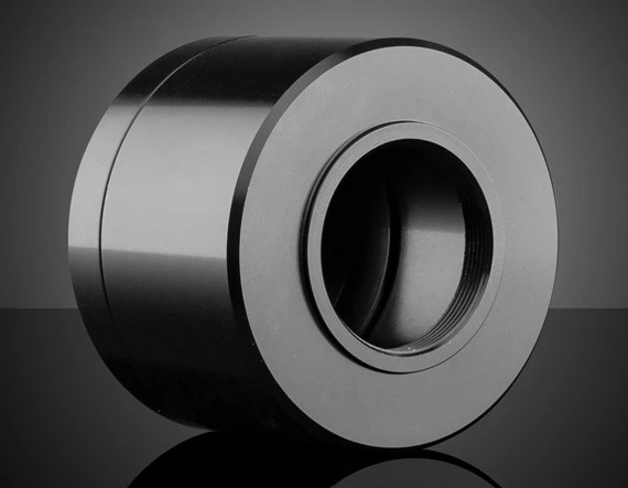 The Nikon 200mm Tube Lens (#58-520) can be used to focus light from the infinity corrected objective onto the image plane. For optimal performance, the distance between the tube lens and the objective’s shoulder should be kept within 100-200mm. This spacing allows accessories to be inserted in the optical path to accommodate specific needs. This tube lens can be integrated into C-Mount systems using the Nikon Tube Lens to C-Mount Holder (#11-150). The four socket head cap screws must be removed to place the tube lens within the Nikon Tube Lens to C-Mount Holder.