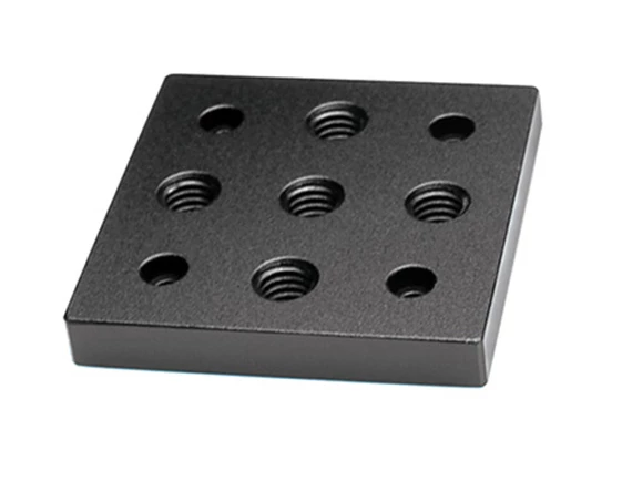 TECHSPEC® Stage Adapter Plates and Accessories are designed to simplify the integration of our popular TECHSPEC Stages in experiments and benchtop systems. Bottom adapter plates are compatible with all 30 and 40mm Single Axis Translation Stages, Vertical Translation Stages, Rotary Stages, Tip-Tilt Stages, and Goniometers, providing a convenient way to mount each stage to standard breadboard and Optical Tables. Metric adapter plates are compatible with M6 tapped tables, while English adapter plates are compatible with ¼-20 tapped tables. Top adapter plates provide five ¼-20 (English plates) or M6 x 1.0 (Metric plates) mounting holes for easily integrating standard posts and post holders with these stages.