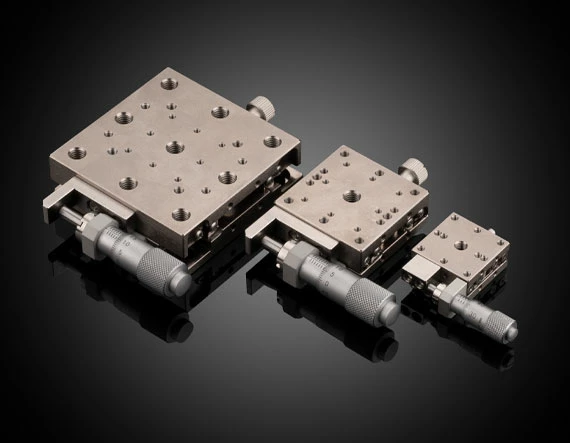 Stainless Steel Extended Contact Ball Bearing Linear Translation Stages feature a gothic arch guide system which provides excellent straightness and parallelism. With bearings machined directly out of the stainless-steel stage platform, these stages are designed to offer extreme stability in temperature-fluctuating environments and are ideal for system applications requiring up to a 20kg load capacity. Stainless Steel Extended Contact Ball Bearing Linear Translation Stages are configured with hole patterns that are compatible with all TECHSPEC Manual Stages. Available in three stage sizes with either English or Metric Mounting Threads, the stages are easily configured in two and three axis orientations, making them ideal for both lab and system integration.
