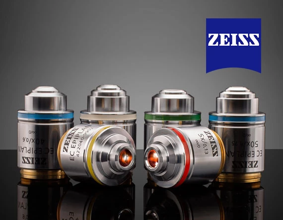 ZEISS EC Epiplan Plan Achromat Infinity Corrected Objectives are plan achromats and feature excellent color correction and flatness of field. Designed to meet the requirements of ISO 19012-1:2013, these objectives are ideal for material microscopy applications. By minimizing stray light, these objectives enhance system contrast making them ideal for reflected light brightfield applications. ZEISS EC Epiplan Plan Achromat Infinity Corrected Objectives have a 23mm field number enabling large areas of magnification.